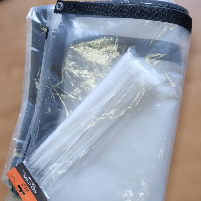 У комплекті додається упаковка пластикових стяжок, що дозволяє швидко й легко закріпити вікно на каркасі альтанки чи тераси.