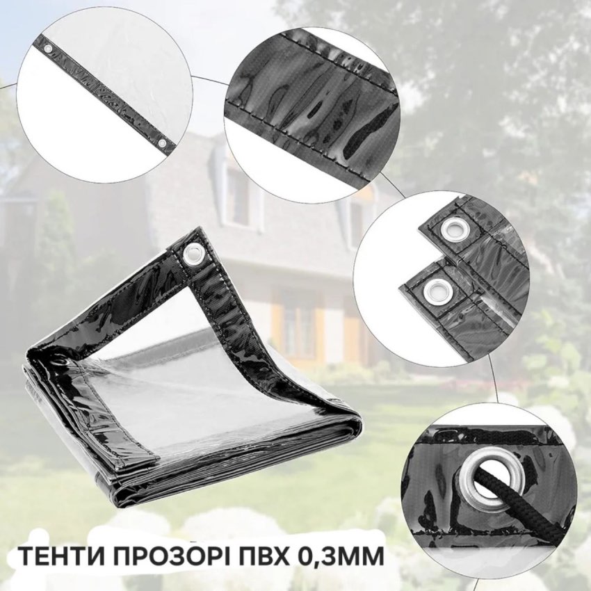 М’які ПВХ-вікна з прозорої ПВХ-плівки товщиною 0,3 мм — це надійне рішення для захисту відкритих просторів від дощу, вітру та пилу. Вікна виготовлені з якісного морозостійкого матеріалу, який не мутніє з часом і витримує температурні коливання, забезпечуючи тривалий термін служби.