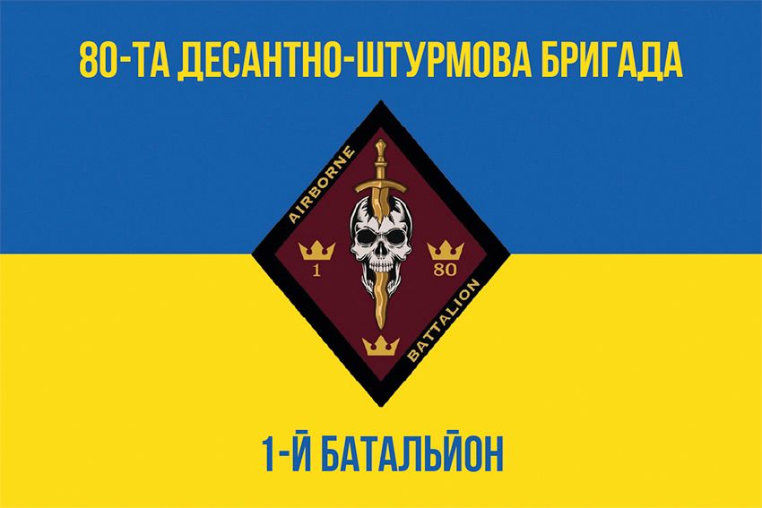 Купити прапор 1-й батальйон 80 ОДШБр ДШВ ЗСУ синьо-жовтий 1 ви можете в п’яти розмірах: