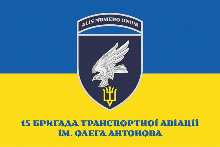 Купити прапор 15-та бригада транспортної авіації імені Олега Антонова (15 БрТрА) ЗСУ синьо-жовтий ви можете в п’яти розмірах: