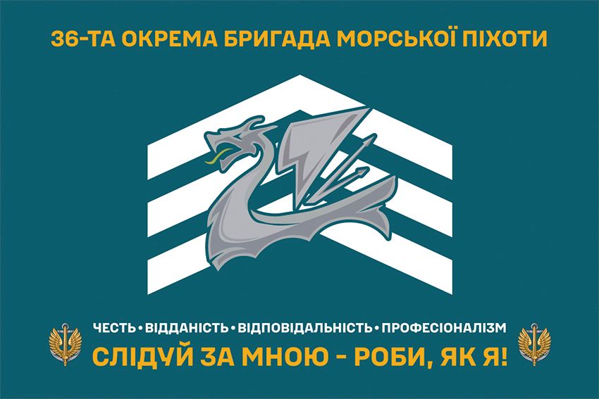 Купити прапор 36-та окрема бригада морської піхоти імені Михайла Білинського (36 ОБрМП) ВМС ЗСУ (лого 4) «Слідуй за мною – роби, як я!» ви можете в п’яти розмірах: