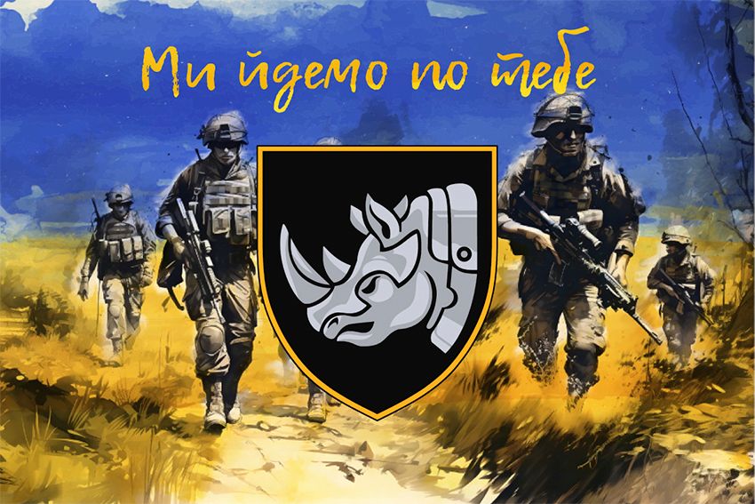 Купити прапор 4-та окрема важка механізована бригада (4 ОВМБр) СВ ЗСУ (лого 4) «Ми йдемо по тебе» ви можете в п’яти розмірах: