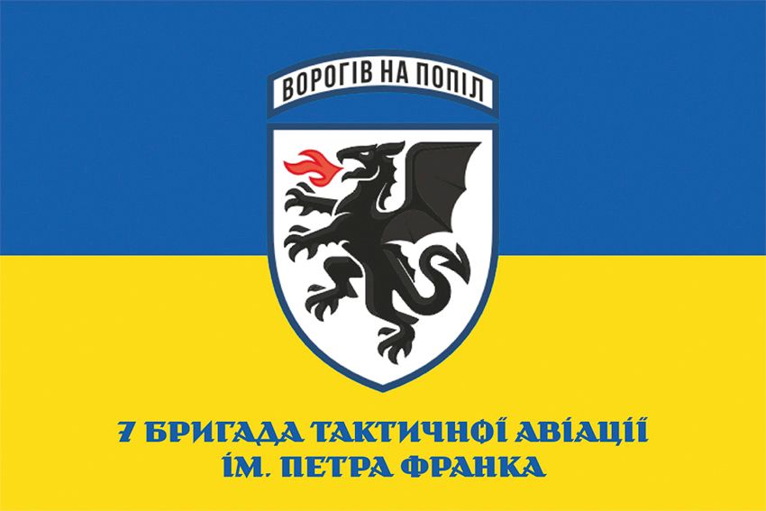 Прапор 7-ма бригада тактичної авіації імені Петра Франка (7 БрТА) ЗСУ синьо-жовтий з друком з прапорної тканини. Прапорна тканина – це синтетична міцна тканина. За рахунок спеціального дрібно-сітчастого переплетення тканини прапор стійкий до будь-яких погодних умов і витримує сильні вітрові навантаження. Тканина тонка, легка і добре розвивається на вітрі. За прапором просто доглядати – його можна прати і прасувати.