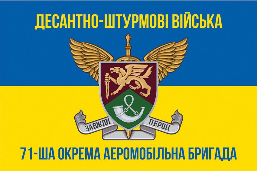 Прапор 71-ша окрема аеромобільна бригада (71 ОАеМБр) ДШВ ЗСУ New синьо-жовтий 3 з друком з прапорної тканини. Прапорна тканина – це синтетична міцна тканина. За рахунок спеціального дрібно-сітчастого переплетення тканини прапор стійкий до будь-яких погодних умов і витримує сильні вітрові навантаження. Тканина тонка, легка і добре розвивається на вітрі. За прапором просто доглядати – його можна прати і прасувати.