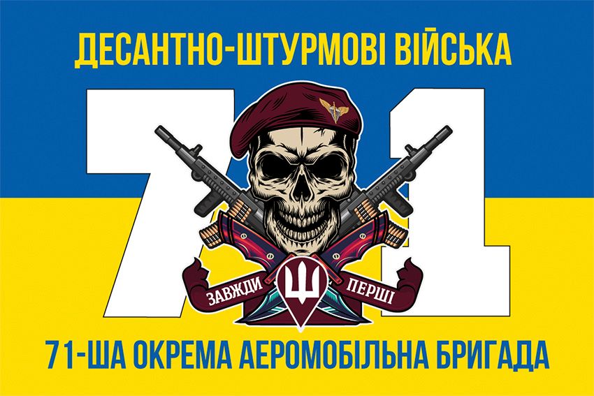 Купити прапор 71-ша окрема аеромобільна бригада (71 ОАеМБр) ДШВ ЗСУ New синьо-жовтий 7 ви можете в п’яти розмірах: