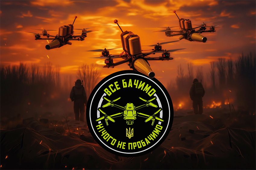 Купити прапор Аеророзвідка України «Все бачимо. Нічого не пробачимо» FPV дрони ви можете в п’яти розмірах: