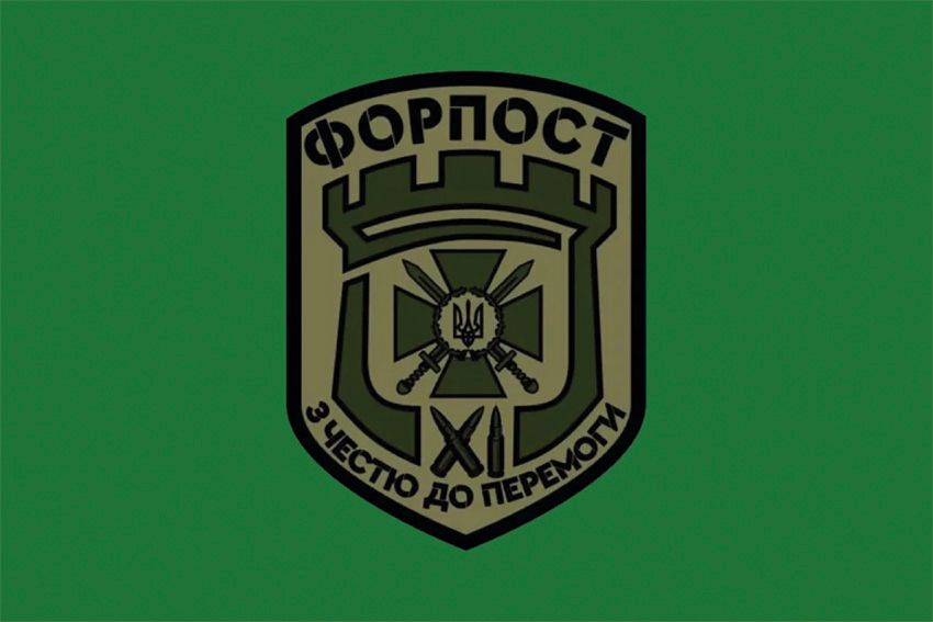 Прапор Прикордонна бригада «Форпост» ДПСУ з друком з прапорної тканини. Прапорна тканина – це синтетична міцна тканина. За рахунок спеціального дрібно-сітчастого переплетення тканини прапор стійкий до будь-яких погодних умов і витримує сильні вітрові навантаження. Тканина тонка, легка і добре розвивається на вітрі. За прапором просто доглядати – його можна прати і прасувати.