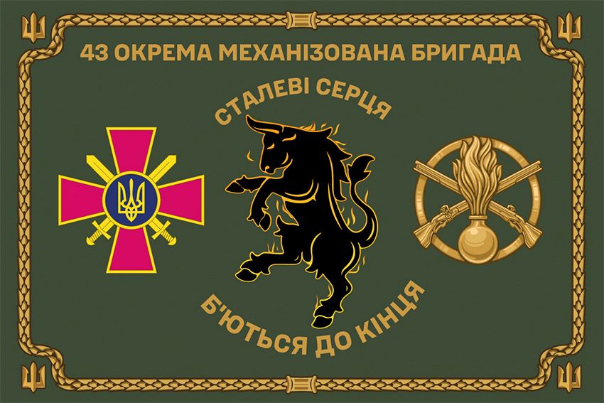 Купити церемоніальний прапор 43 окремої механізованої бригади (43 ОМБр) ЗСУ оливковий 1 ви можете в п’яти розмірах: