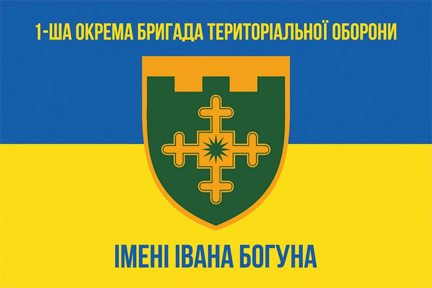 Купить флаг 1-я отдельная бригада территориальной обороны имени Ивана Богуна (1 ОБрТрО) сине-желтый 1 вы можете в пяти размерах:
