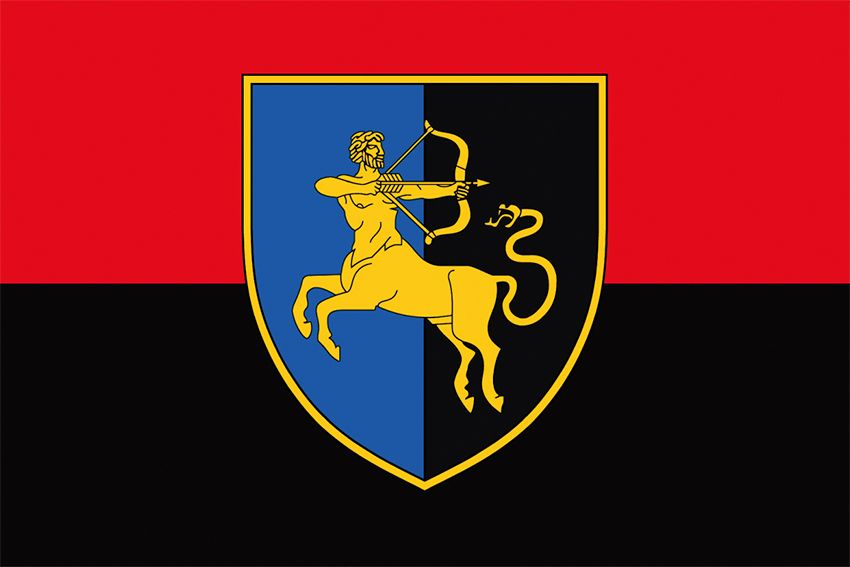 Купить флаг 141 отдельной механизированной бригады (141 ОМБр) СВ ВСУ красно-черный вы можете в пяти размерах: