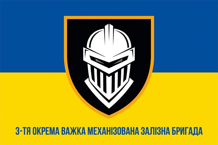 Купить флаг 3 отдельной тяжелой механизированной Железной бригады (3 ОТМБр) СВ ВСУ сине-желтый 1 вы можете в пяти размерах: