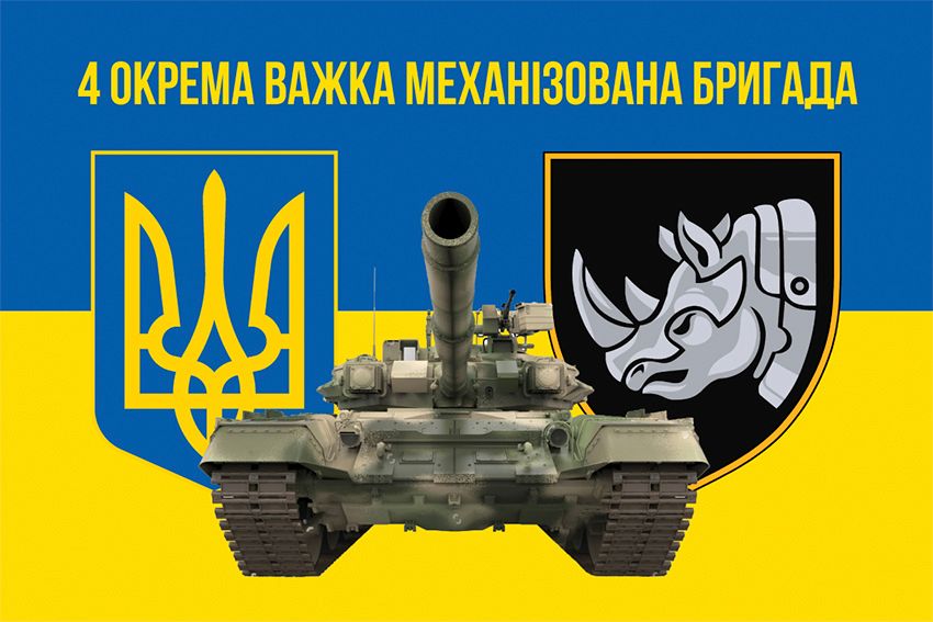 Купить флаг 4-я отдельная тяжёлая механизированная бригада (4 ОТМБр) СВ ВСУ (лого 4) сине-желтый 4 вы можете в пяти размерах: