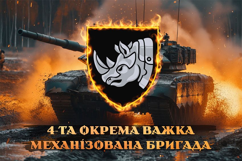 Купить флаг 4-я отдельная тяжёлая механизированная бригада (4 ОТМБр) СВ ВСУ (лого 4) танк в бою вы можете в пяти размерах: