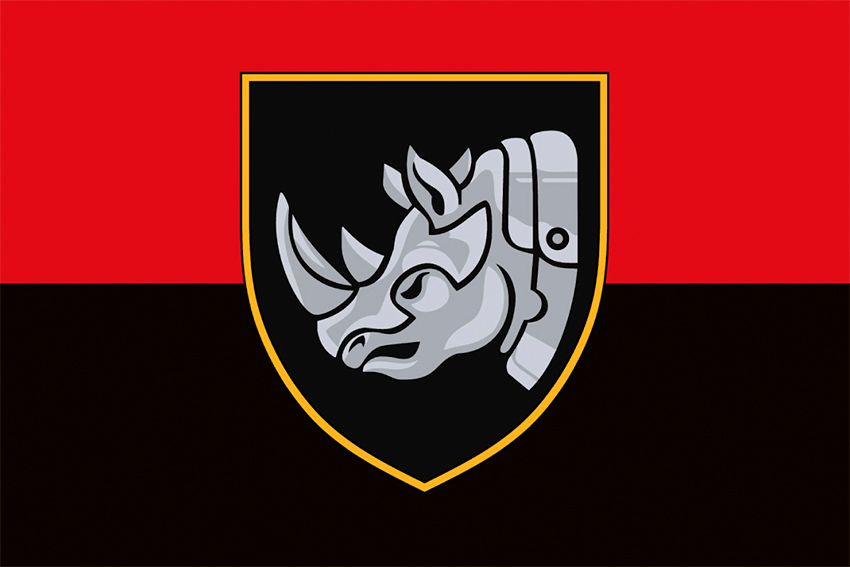 Купить флаг 4-я отдельная тяжёлая механизированная бригада (4 ОТМБр) СВ ВСУ (лого 4) красно-черный вы можете в пяти размерах: