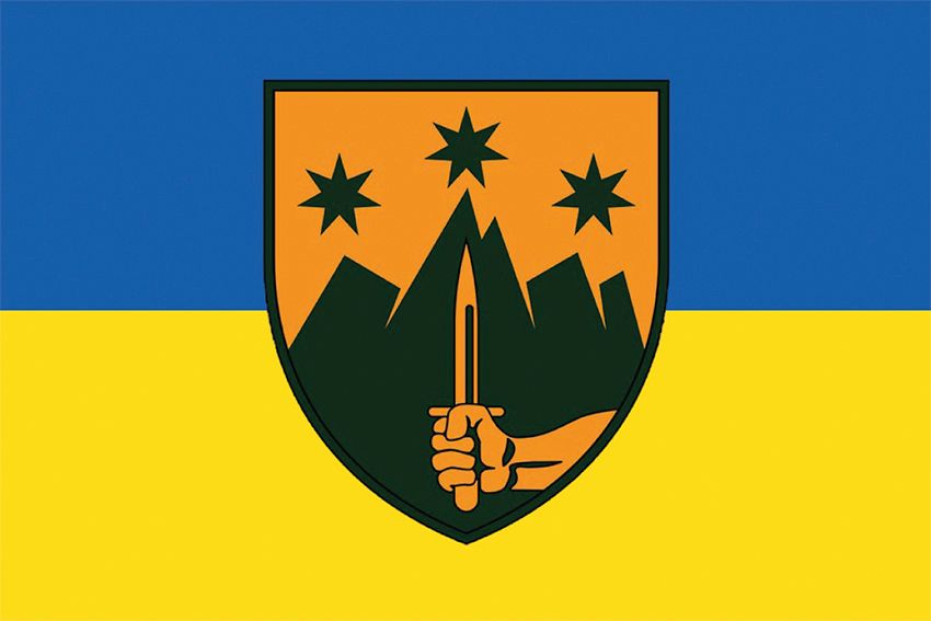 Купить флаг 425-й отдельный штурмовой полк «Скала» (425 ОШП) СВ ВСУ (лого 3) сине-желтый вы можете в пяти размерах: