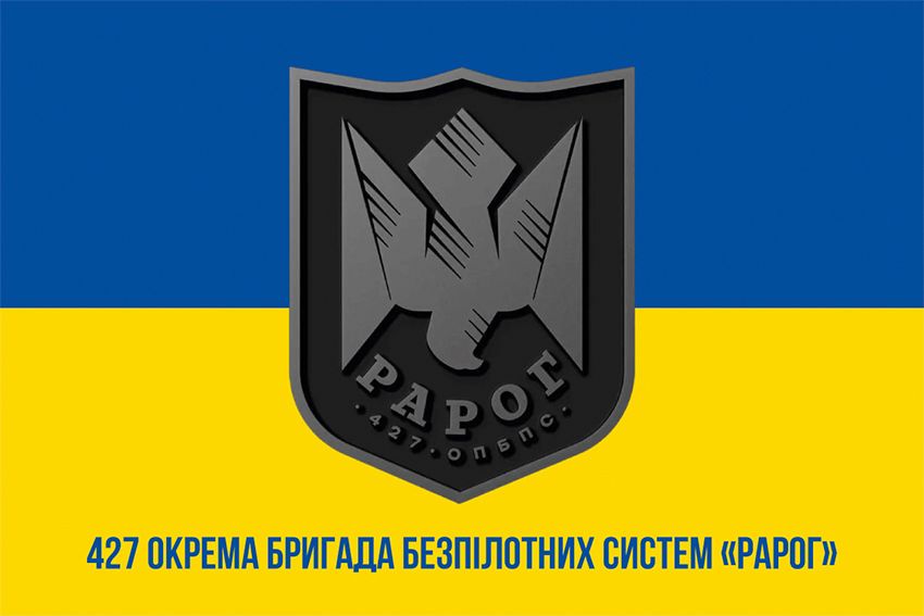 Купить флаг 427-я отдельная бригада беспилотных систем «Рарог» (427 ОБр БпС) ВСУ сине-желтый 1 вы можете в пяти размерах: