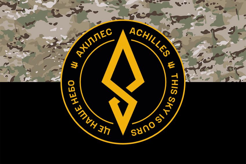 Купить флаг 429-й отдельный полк беспилотных систем «АХИЛЛЕС» (429 ОП БпС) ВСУ (лого 2) камуфляж-черный вы можете в пяти размерах:
