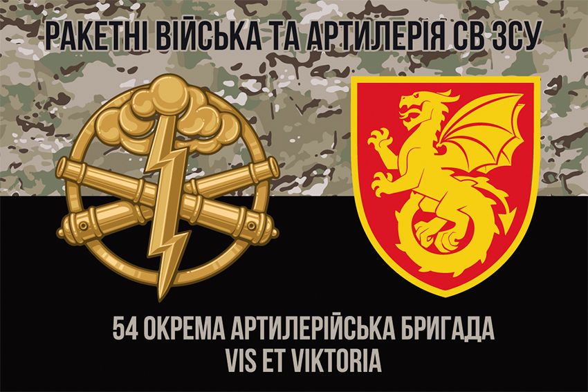 Купить флаг 54-я отдельная артиллерийская бригада (54 ОАБр) СВ ВСУ камуфляж-черный вы можете в пяти размерах: